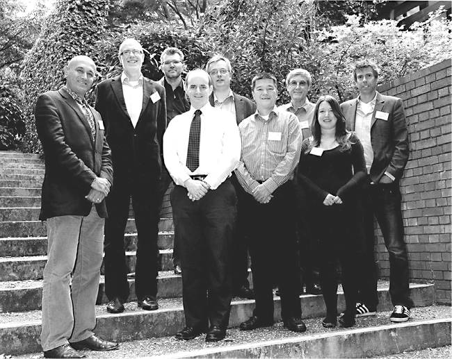 Рис. 1.2. Участники симпозиума по квантовой биологии (Суррей, 2012), слева направо: авторы данной книги Джим Аль-Халили и Джонджо Макфадден; Влатко Ведрал, Грег Энгель, Найджел Скраттон, Торстен Ритц, Пол Дэвис, Дженнифер Брукс и Грег Скоулз
