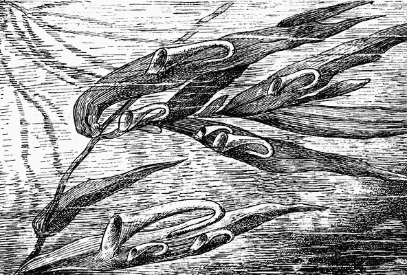 Отрежем ножницами под водой несколько стебельков рдеста с обнаруженными нами трубами и осторожно перенесем их в экскурсионную ванночку. Трубок как не бывало - на их месте колеблются бесформенные хлопья ткани. Очевидно, форма и существование труб неразрывно связаны с течением. Ток воды поддерживает и растягивает нежные трубы, придавая им характерный вид ловчей сети, сходной по форме с планктонной. Рассмотрев в сильную лупу или в микроскоп кусочек сети, можно видеть, что стенки ее не сплошные, а ячеистые - это действительно сеть!