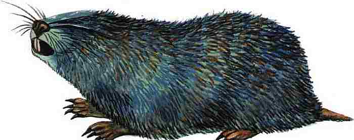 Отряд: насекомоядные. Длина тела до 22 см, хвоста — 20 см, масса чуть больше 0,5 кг. На хвосте есть пахучие железы, на вытянутой мордочке — большие вибриссы. Живут в норах по берегам лесных водоемов со стоячей водой, на дне водоема прорывают в иле траншеи до песчаного дна, по которым и курсируют из норы в нору. Питаются растениями и малоподвижными водными животными. В потомстве 4–5 детенышей, слепых, голых, весом всего по 2–3 г. Ориентируются в воде с помощью вибрисс и запаха, видят очень плохо.