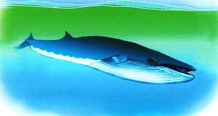 Отряд: китообразные. Кит малый полосатик — самый миниатюрный из усатых китов. Его длина «всего» 10 м. Полосатиков даже долгое время принимали за детенышей других китов. Полосатики обычно живут стадами. При встрече с кораблем занимают вертикальное положение, выставляют из воды голову, чтобы лучше разглядеть судно. Распространен по всему Мировому океану, кроме тропических вод.