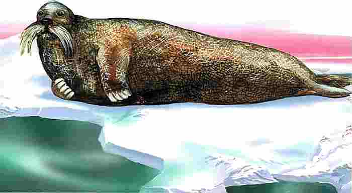 Отряд: ластоногие. Длина тела около 2 м, масса до 240 кг, (зимой до 300 кг). Вибриссы очень длинные, толстые, больше, чем у других тюленей. Предпочитает прибрежные районы — питается донными и придонными животными. Длина новорожденного детеныша чуть больше метра, у него уже есть большие «усы». Обитает по всей Приполярной зоне.
