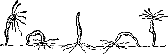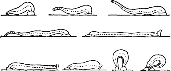 Гидра может плавать, может переползать с места на место. Поочередно присасываясь то подошвой, то передним концом тела с щупальцами, она ползает подобно гусенице-землемеру. Она может ползти и по-другому: словно кувыркаясь через голову.