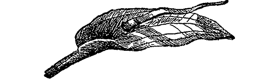 Прудовики и катушки ползают по нижней стороне листа: соскабливают с нее мельчайшие водоросли. И тут же ползает охотник за ними — улитковая пиявка-клепсина. Она ползает наподобие гусеницы-землемера: изгибает свое тело дугой. Присосется передней присоской и подтянется к ней, высоко взгорбившись. Затем присосется задней присоской и вытянется вперед. Опустит передний конец тела, присосется передней присоской, взгорбится… И так раз за разом: взгорбится, вытянется, взгорбится, вытянется…