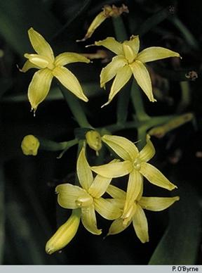 Сверху: радиально-симметричный цветок у Spiloxene serrata, представителя семейства гипоксиевые (Hypoxidaceae) из Южной Африки. Снизу: симметрия цветка орхидей Apostasia wallichii (подсемейство Apostasioideae) из Новой Гвинеи близка к радиальной (http://www.orchidspecies.com/apostwallichii.htm).