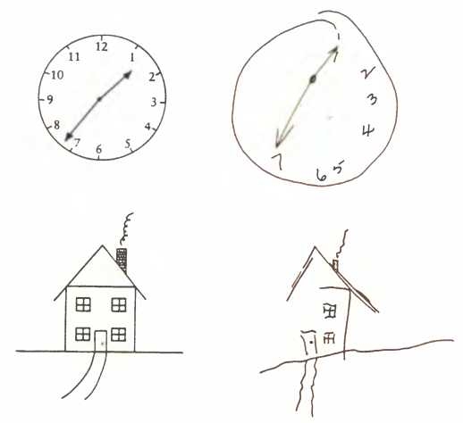 В результате некоторых повреждений мозга люди перестают замечать половину окружающего мира и игнорируют все, что находится с одной стороны (обычно слева) от центральной линии поля зрения. Справа показаны результаты попыток пациента, страдающего этим расстройством, воспроизвести рисунки, показанные слева.