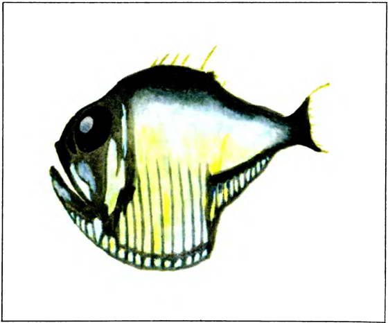 Наиболее необычной формой тела и целым комплексом биологических особенностей отличаются рыбы, обитающие на глубине 2–4 километра. Некоторые из этих маленьких страшилищ имеют огромную зубастую пасть, способную захватить и проглотить крупную добычу. Встреча хищной глубоководной рыбы со своей жертвой происходит очень редко, и размеры добычи не являются препятствием для агрессора. Таков хаулиод — небольшая черная рыбка с длинным чувствительным усиком на нижней губе и со страшными длинными зубами.