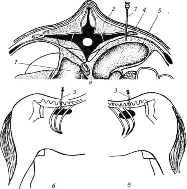 Следует учитывать то, что при подведении раствора новокаина к нервным образованиям у лошади, как правило, выступает пот в зоне иннервации блокируемого нерва.