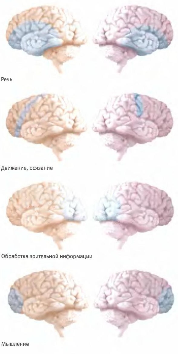В то время наблюдения Пенфилда были истолкованы в пользу того предположения, что воспоминания хранятся в мозге в виде отдельных связок (энграмм) и их можно в любой момент вызвать. С тех пор выяснилось, что все не так просто. Долговременная память распределена по всему мозгу и закодирована в тех же участках, где исходно возникали соответствующие ощущения. Например, детские воспоминания о том, как в один солнечный день мы ели мороженое за городом, где пели птицы, хранятся в нескольких сенсорных областях: вкус мороженого — во “вкусовых” областях мозга, ощущение кожей солнечного тепла — в соматосенсорной коре, звуки птичьего пения — в слуховой коре, вид деревьев — в зрительной коре, и так далее. Если исходно мы ощущали все это вместе, то, вызывая в сознании одну из многих составляющих воспоминания, мы, как правило, можем вызвать и остальные, воссоздавая “полное” воспоминание из набора таких составляющих. Пенфилд, по-видимому, стимулировал только один сенсорный аспект памяти, а наблюдал ответ многих.