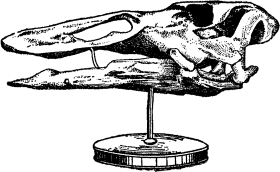 Рис. 12. Череп утконосого динозавра (Diclonius), 120 см длины. Американский музей естественной истории.