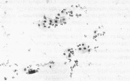 Вагинальная цитология при открытой пиометре у суки. Большое количество дегенеративных полиморфноядерных лейкоцитов (см. Приложение)