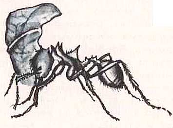 Растениями питаются и южноамериканские муравьи-листорезы. Они действительно срезают листья, иногда совершенно обнажая деревья. Но вред, наносимый муравьями, вполне компенсируется: они обогащают почву, заменяя тем самым дождевых червей, которых нет в Южной Америке. Листорезов за то, что они носят срезанные листочки, называют еще и зонтичными муравьями. Но скорее их можно было бы назвать «грибоводными». Ведь листья нужны не для еды, а для того, чтобы удобрять почву на грибных плантациях, которые они устраивают вокруг своих жилищ.