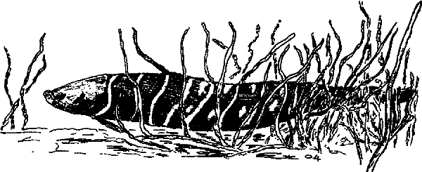 Примерно также ведут себя и другие слабоэлектрические рыбы Америки. Гимноты, живущие на мелководье, пользуются убежищами в корнях и полых стеблях тростника. Червяка, оказавшегося в 5 см от укрытия, они замечают мгновенно, выскакивают хвостом вперед и тотчас хватают добычу. Кусочек пластмассовой пластинки, оказавшийся на таком же расстоянии, рыбка обнаружила через 2–3 секунды. Подплыв к пластинке, рыбка 1–2 минуты изучала ее при помощи хвоста, но до нее, естественно, не дотрагивалась, держа хвост в 1–2 см от исследуемого предмета.