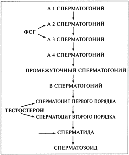 Процессы сперматогенеза приведены на фиг. 6.6.