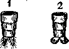Конец хвоста рачка Artemia. Налево A. Salina. Направо А. Milhauseni.