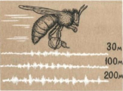 Профессор Карл Фриш много лет назад расшифровал, каким образом эти насекомые передают друг другу различную информацию, в том числе сообщения о месте нахождения корма и направлении полета к нему. Для этого пчелы используют своеобразные танцы. Но не все танцы пчелы исполняют молча. «Поют» они и когда выделывают «па», возвращаясь с плантаций медоносных растений. Исполняя свою песню, они сообщают, как далеко находится нектар. Но прежде чем рассказать, надо ведь самим знать это расстояние. Определяют его фуражиры по тому, сколько энергии они затратили на полет, возвращаясь к месту жительства. Пока пчела перелетает с цветка на цветок, «счетчик» ее не работает. Но вот она обследовала последний цветок и, едва оторвавшись от него, «включила» свой хитрый «прибор». Оказавшись дома, она тут же выкладывает нужные сведения.