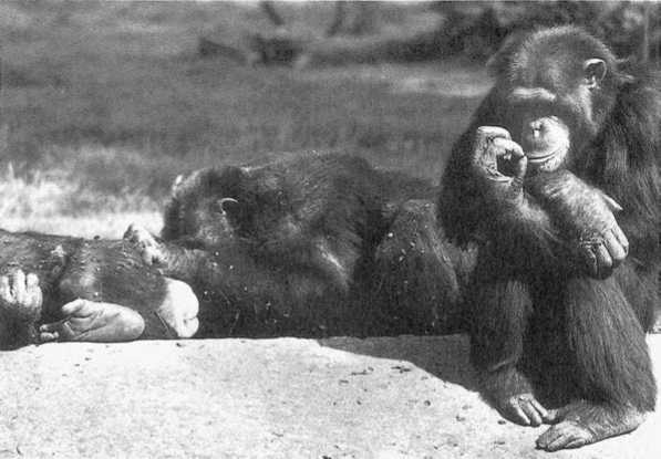 Но остается одна проблема. Если бы я должен был определить, какой из самцов наиболее амбициозен и ревнив, я бы сказал, что это Йерун. А если вопрос в способности и желании защищать, я, выбирая между Йеруном и Лёйтом, снова назвал бы Йеруна. Предполагается, что эти характеристики связаны с успешным воспроизводством. А потому весьма примечательно, что Йерун выигрывает по обоим этим показателям, хотя, как мы знаем, несмотря на частые совокупления (нередко заканчивающиеся эякуляцией), он из-за своего физического недостатка вообще не может оплодотворять самок. Все его усилия тщетны.