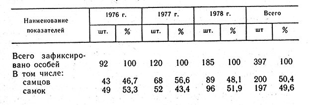 Таблица. 4. Половое соотношение в выводках амурского тигра,содержащихся в зоопарках
