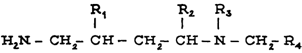 Для демонстрации сути приема, лежащего в основе алгоритма отбора признаков, характерных для определенного типа биологической активности, авторы рассматривают простейший пример группы соединений, принадлежащих одному ряду и различающихся лишь характером заместителей в четырех положениях. Можно для определенности взять некоторое циклическое ядро или фрагмент алифатической цепочки с заместителями R1, R2, R3, R4. Например,