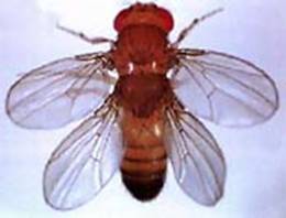 Слева: плодовая мушка Drosophila melanogaster (http://www.tmd.ac.jp/artsci/biol/textlife/fruitfly.jpg), один из основных модельных объектов генетики животных. Справа: мутация bithorax у дрозофилы (http://evolution.berkeley.edu/evosite/evo101/IIIC6Development.shtml): превращение третьего сегмента груди в дубликат второго, в результате чего у мухи появляется ещё одна пара крыльев, а также второй желудок.