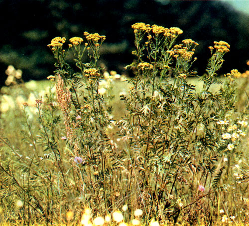 Что это за жёлтые пуговицы пришиты к зелёному стеблю? И не две, не три — целая гроздь. Да это же пижма — дикая рябинка! Ишь как вымахала — выше забора! Её сразу узнаешь по листьям, похожим на листья рябины, и по горькому запаху цветов, похожих на ромашки с оборванными лепестками. Только не гудят над пижмой шмели, не порхают бабочки. Неприятный запах растения отгоняет насекомых. Поэтому и скот её не ест. Зато хороша пижма как лекарство. И корни её дают зелёную краску. И пряники становятся вкуснее оттого, что в них добавляют немного пижмы. Выходит, не без пользы растёт она.