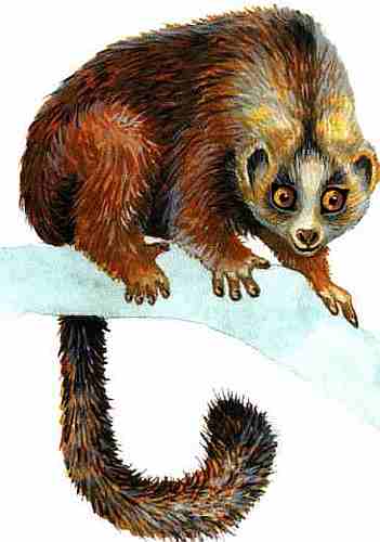 Отряд: приматы. Толстый лори — ночное животное. Живут лори на деревьях в тропических лесах Юго-Восточной Азии, неторопливо передвигаются по веткам, могут висеть на одной задней конечности, крепко ухватившись за ветвь; в это время остальные конечности заняты другими делами. Держатся парами, иногда поодиночке. Питаются листьями, фруктами, яйцами птиц, насекомыми, ящерицами. Рождается 1–2 детеныша, которые сразу же вцепляются в шерсть матери. Через сутки они уже ходят по веткам, а потом ездят на папаше и старших детенышах.