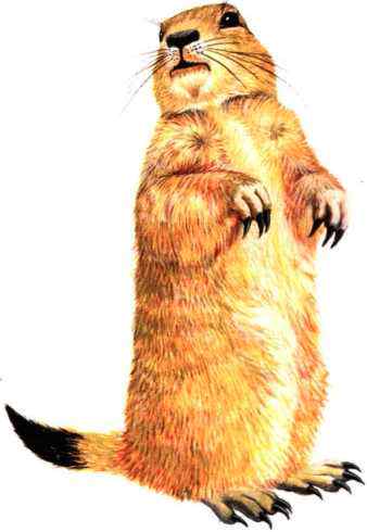 Отряд: грызуны. Луговые собачки — ближайшие родственники сусликов, а распространены они в Северной Америке. Длина тела — до 40 см, хвост — до 10 см, масса около 1 кг. Поселения луговых собачек хорошо заметны по холмикам земли высотой до полуметра. Всю траву вокруг городка собачки подрезают у корня для лучшего обзора. На поверхности собачки издают звуки, похожие на собачий лай, ударяя при этом хвостом о землю. Интервалы между звуками информируют животных об обстановке. Если частота лая повышается, значит, возникла опасность. В потомстве обычно 3–5 детенышей.