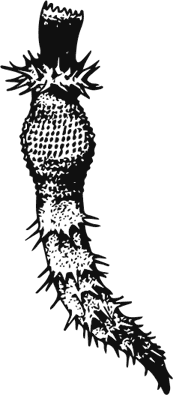 Совсем другой облик имеют кишечнодышащие – червеобразные твари, одиночные, роющие U-образные норы в илу. У них тоже есть стомохорд, но на брюшной стороне ему противолежит пигохорд; по бокам глотки открыты жаберные щели. С другой стороны, кишечнодышащие покрыты мерцательным эпителием, их кровеносная система незамкнута, а нервная система сетчатая, даже без ганглиев, хотя местами сгущается в спинные и брюшные нервные «стволы», причем те и другие соединены поперечными связями, а спинные проявляют тенденцию к слиянию в почти трубку. У некоторых личинка-торнария очень похожа на личинок-аурикулярий иглокожих голотурий. В общем, как-то так должен был выглядеть наш предок в раннем кембрии.
