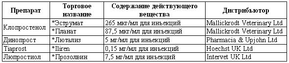Табл. 16.9. Препараты простагландинов, применяемые для воздействия на репродуктивную функцию собак