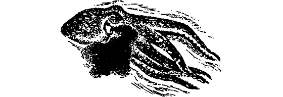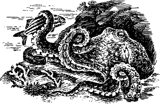 С кем, однако, столкнулся Билль — с кальмаром или осьминогом? По поведению — ползание по камням, цепляние за камни при помощи присосок и, конечно, способность бросаться — существо несомненно ближе к осьминогам.