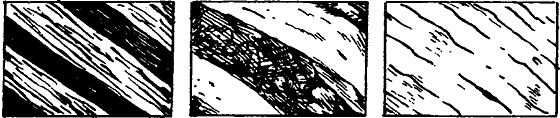 Рисунки с микроснимков образцов ткани от: а) кальмара; б) осьминога; в) флоридского монстра.