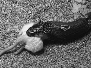 Знает о данной особенности поведения змеи и мангуст. Его тактика весьма проста: прежде всего молниеносная увертливость, заход с тыла и укус в затылок. Чтобы кобра не могла вырваться, мангуст прижимает ее к земле всеми четырьмя лапами. Он лишь в 8 раз менее восприимчив к яду кобры, чем, скажем, кролик, т. е. иммунитета у мангуста практически нет. Поэтому и гибли в большом количестве мангусты, завезенные на некоторые Антильские острова для уничтожения местных ямкоголовых змей. Методы борьбы, веками отрабатываемые предками этих животных на медлительных кобрах, здесь оказались негодными, т. к. гремучие и ямкоголовые змеи демонстрациями не занимались, а кусали точно и стремительно.