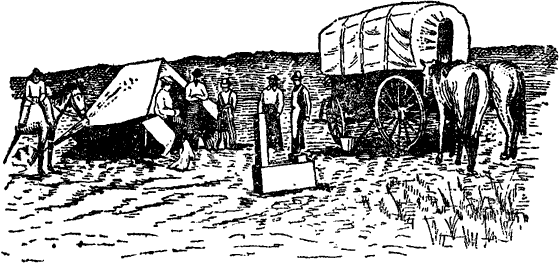 Рис. 14. Лагерь и повозка охотников за ископаемыми.