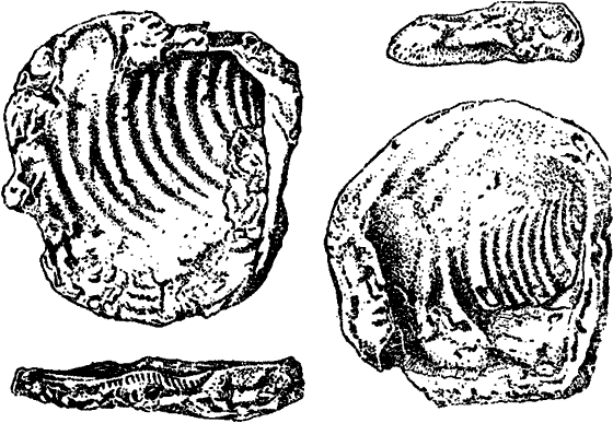 Рис. 15. Ископаемые раковины (Haploscapha grandis, по Копу).