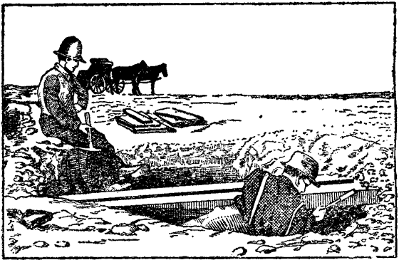 Рис. 16. Чарльз Штернберг и его сын отделяют большую глыбу с окаменелостями от мелового пласта.