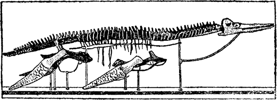 Я узнал от одного из музейных служащих, что образец этот будет собран летом 1908 года и помещен на выставке. До тех пор, пока стоит музей Карнеджи, любители природы будут восхищаться великолепным экземпляром морской черепахи. По очертаниям она очень напоминает средиземноморскую черепаху наших дней. Ее огромные передние лапы были вооружены ужасными когтями. Задние же были вытянуты вдоль тела и служили этому «гребцу мелового периода» кормовыми веслами.
