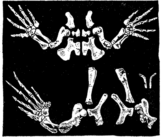 Рис. 18. Кости конечностей огромной ископаемой морской черепахи (Protostega gigas). Найдены Ч. Штернбергом.