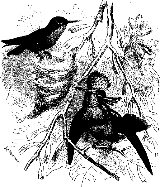 Самые маленькие птицы — колибри. Их масса колеблется от 2 до 20 граммов. Самая маленькая из них — птица — муха, живущая на Кубе. Длина ее тела, если ощипать перышки и не учитывать длинного клюва, едва достигает 3 сантиметров. Это прелестные существа. Особенно красивы самцы — голова, горло, бока красного цвета с золотым отливом, все остальное тело зеленое, но на спине перья переливаются синими, а на хвосте — красными тонами.