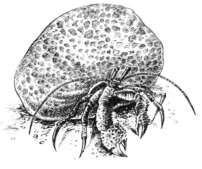А жильцом такого домика оказывается рак-отшельник. Хорошо известно, что раки-отшельники имеют не защищенное твердым панцирем брюшко и поэтому живут, постоянно скрывая его в пустой раковине какого-либо морского моллюска.