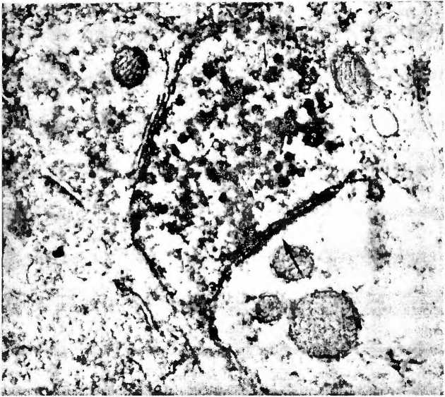 Рис. 5B. В электронный микроскоп окситоцин и вазопрессин видны как черные зернышки в месте контакта отростков нейронов (синапсе). (Buys R. М. Swaab D. FCell Tiss. Res. 204, 355–365, 1979.) Поступая в мозг, эти вещества влияют на наше поведение, например на социальное взаимодействие.