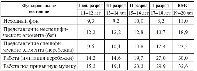 Проявление этих корковых функциональных систем в ЭЭГ усиливается у юных спортсменов по мере повышения возраста и спортивного мастерства, а их особенности проявляются не только во время работы, но и при ее мысленном выполнении (представлении движения), а также в предстартовом состоянии, демонстрируя степень освоения навыка и специфическую преднастройку мозга (табл. 31).