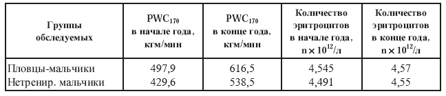 Физическая работоспособность и количество эритроцитов в крови у юных пловцов и нетренированных мальчиков 10 11 лет в начале и конце учебно-тренировочного года