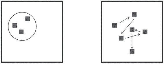 Рис. 9. Навскидку мы можем определить около трех предметов (рисунок слева); если мы видим большее количество предметов, то нам придется пересчитать их один за другим (рисунок справа). У опытных геймеров этот лимит доходит до пяти