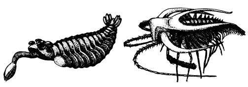 Поначалу биологов «обнадежила» сприггина — мягкотелое животное вендского периода (630–542 млн лет назад; см. главу «Животные»), которое вроде бы имело ожидаемое сочетание признаков: цельную «голову» в форме полумесяца, напоминающую головной щит трилобита, и длинное тело, состоящее из одинаковых сегментов с длинными придатками, напоминающее тело многощетинковых червей.