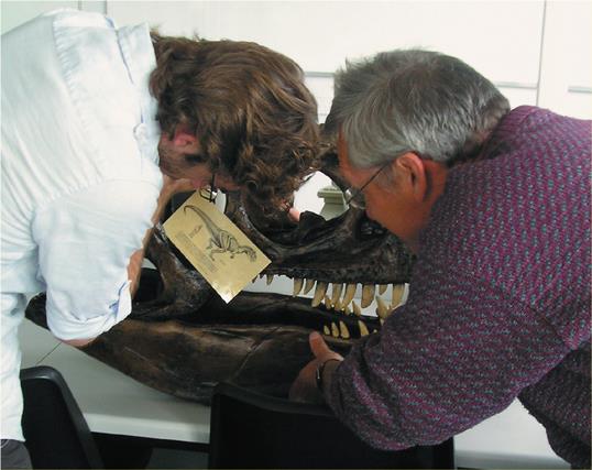 Сегодня при изучении функциональной морфологии используются компьютерные модели и томография. В прошлом ученым часто приходилось манипулировать самими окаменелостями – или моделями окаменелостей, – чтобы увидеть, как животные могли бы двигаться при жизни. На фото: ученые изучают слепок черепа аллозавра