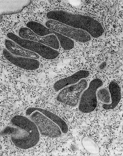 Рис. 3. На этой фотографии видны метаногены (светло-серые) и гидрогеносомы (темно-серые).