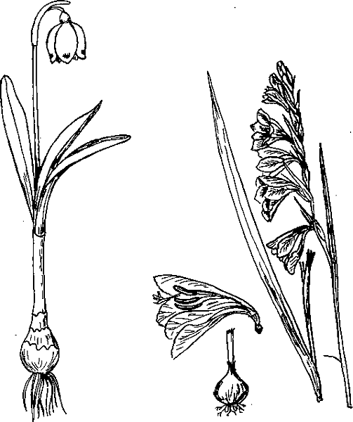 Рис. 76. Белоцветник весенний. Рис. 77. Шпажник черепитчатый (слева — цветок и клубень).