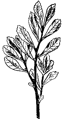 Узкой полосой по берегу Балтийского моря растет этот интересный реликт. Восковница наиболее характерна для переходных и низинных болот — открытых и облесенных, но встречается и на сырых лугах, и на приморских песках. Это сильно ветвистый кустарник ростом 1–1.5 м; опадающие на зиму листья небольшие, удлиненные, пильчатые на конце. Цветы в сережках, как у ивы. Но стоит тронуть растение — и сразу становится ясно, что это восковница (рис. 80). Запах ее, сильный и смолистый, ни с чем не спутать.