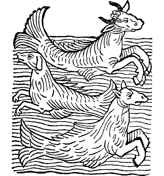 Морская корова, морская собака и морская лошадь («Hortus sanitatis», 1491).