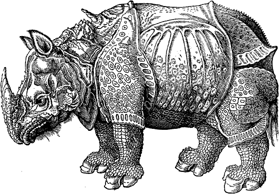 Носорог (рисунок Дюрера, Геснер, 1560).