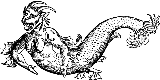 Множество хлопот причиняли Геснеру ламантины, дельфины и другие рыбоподобные существа. Они были так странны на вид, а некоторые из них походили даже на человека: авторы и художники приложили к тому немало стараний. Так появились описания «морских монахов» и «морских епископов», нереид и русалок. Геснер не только описал их, но и дал рисунки — переделки рисунков из более старых книг. Морские чудеса попали в четвертый том. «Морской монах» был отнесен к рыбам: его тело покрывала чешуя. Позже выяснилось, что нереиды — самки ламантинов, приукрашенные и искаженные россказнями «очевидцев»; несомненно, что и «морской монах» был каким-то водным млекопитающим, превращенным в «монаха» теми же «очевидцами».
